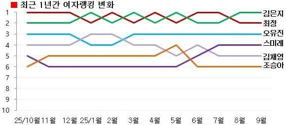 ※全棋士总榜定位: 金恩持30位|崔精32位|吴侑珍68位|仲邑堇93位|金彩瑛117位|曹承亚134位。