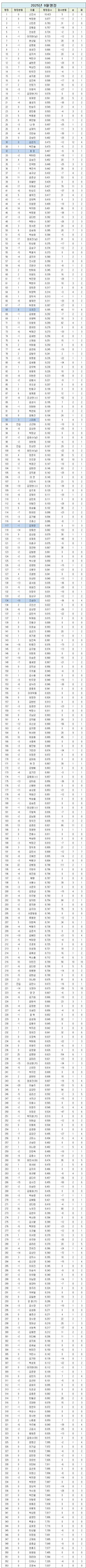 ◆2025年9月韩国职业棋士等级分重磅解读◆